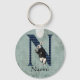 Whimsical design for Alice in Wonderland lovers of all ages features capital letter / initial N with black and blue harlequin fill and original White Rabbit illustration that has been tinted, on a distressed vintage floral and handwriting blue tinted background. Personalize with name or other message
