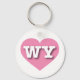 Ce porte - clé présente un coeur rose cool contenant les lettres coques en gras, blanches et supérieures WY, l'abréviation officielle du Wyoming, l'état d'égalité.