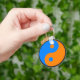 Yin Yang Porte - clé. Ce porte - clé est décoré d'un azur et d'un symbole Yin Yang orange. "Dans la philosophie taoïste, yin et yang se soulèvent ensemble d'une quiescence ou d'un vide initial et continuent à bouger en tandem jusqu'à ce que la quiescence soit à nouveau atteinte. Par exemple, le fait de déposer une pierre dans un bassin d'eau calme va simultanément soulever des vagues et des creux inférieurs entre elles, et cette alternance de points hauts et bas dans l'eau va rayonner vers l'extérieur jusqu'à ce que le mouvement se dissipe et que le bassin soit calme une fois de plus. Le Yin-yang, par conséquent, est toujours une qualité opposée et égale. De plus, chaque fois qu'une qualité atteint son maximum, elle commence naturellement à se transformer en qualité opposée : le grain qui atteint sa pleine hauteur en été (tout yang) produira des graines et mourra en hiver (entièrement yin) dans un cycle sans fin" - Wikipedia. Une excellente idée cadeau.