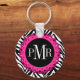 Porte-clés Zebra Print Hot Rose Lace Monogramme Personnalisé