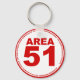 Un porte - clé de la zone 51 avec un avertissement aux intrus le long de la jante.
