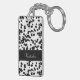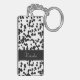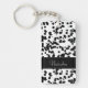 Un motif noir et blanc tacheté de fourrure de chien dalmate. Une bannière noire avec des points blancs et du texte court à travers. Le texte peut être customisé.