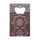 Porte en chêne foncé poli finie à l'église médiévale espagnole avec incrustations et latin au-dessus.
