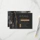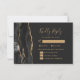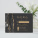 Le bord gauche de cette élégante carte d'enceinte RSVP de mariage moderne comporte une bordure d'aquarelle noire ornée d'une parties scintillant en faux or. Le titre "Kindly Reply" apparaît dans un script d'écriture manuscrite de couleur or, avec le texte restant dans les polices cuivre et italique sur un arrière - plan non noir. Inclut des espaces pour que vos invités puissent commencer leur choix de trois entrées modifiables. L'envers est assorti d'un design d'agate noir et or.