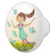 Porte En Céramique Fille de printemps graphique avec bouton d'oiseaux