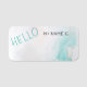 Assiette teintée Aqua pour une étiquette de nom "Hello" qui est réutilisable avec une surface d'effacement sec. Sobre sans être quelconque. Polices quirky pour le plaisir, mais vous pouvez customiser à d'autres, si vous le souhaitez.