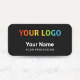 Personnalisez facilement cette broche personnalisée pour employés de sécurité avec le nom, la profession, le titre du poste et le logo de l'entreprise. Un design d'entreprise simple en cool professionnel total couleurs noires entièrement personnalisable, sans-serif polices de base et moderne et un look professionnel et clair. Disponible avec une broche de sécurité arrière ou une attache magnétique arrière, avec des coins arrondis ou des coins carrés réguliers. Les couleurs et les polices Arrière - plans sont totalement personnalisables. Pas de commande minimum.