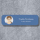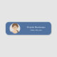 Un nom minimaliste Étiquette avec un cadre photo circulaire pour entreprise salariée ou petite entreprise avec nom et emploi ou service, le tout sur un arrière - plan bleu. Vous pouvez aussi ajouter votre propre logo au lieu de la photo !