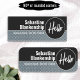 Ajoutez un badge de bienvenue aux employés, au personnel, aux bénévoles ou à d'autres membres du personnel. Ce badge de nom professionnel présente tout le texte en blanc avec un fond de faux plateau en aluminium strié sur la moitié inférieure et une moitié supérieure noire. Le nom est indiqué sur le noir avec le nom de l'entreprise, le nom de l'école ou le titre de poste en dessous sur la moitié inférieure en aluminium strié. Sur la droite, un modèle de salutation "Bonjour" dans un cercle que vous pouvez conserver ou raccourcir en Salut. Personnalisez les champs de texte ou modifiez-les à l'aide de l'outil de conception pour sélectionner un style de police, une taille et une couleur de votre choix.