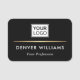Noir, étiquette de nom élégant avec votre nom, titre et logo personnalisé. Votre nom et votre logo sont séparés par un dégradé de couleur doré (pas de véritable feuille). Vous pouvez modifier la couleur et les polices arrière - plans, déplacer et redimensionner le logo et d'autres éléments à l'aide de l'outil de conception.