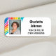 Créez votre propre étiquette de nom colorée avec ce design amusant et convivial! Doté d'une vague vibrante de couleurs arc-en-ciel, il peut être personnalisé avec votre photo d'identité, nom et titre de travail. Tout le texte peut être customisé ou supprimé pour répondre à vos besoins. Ce modèle élégant est idéal pour de nombreux lieux de travail et professions, tels que les enseignants, le personnel éducatif, les infirmières, les postes de soins de santé, les employés de détail, les conférences, le personnel de campagne et plus encore. Couleurs de badge imprimées : bleu, rose-violet, rouge, orange, jaune, vert, bleu-vert et blanc. Disponible avec un boulon magnétique ou un dos à broche traditionnel.