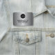 Elegant minimalist modern business corporate executive staff professional identification badge - magnetic or safety pin plastic rectangular name tag template with custom company logo over a gray faux silver brushed metallic background. ++++++++++++ Easy to personalize with your details.