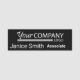Cette simple étiquette de nom de marque en noir et blanc affiche clairement votre nom et le logo de votre entreprise. Polyvalent pour les salons, les réunions et les conventions. Modifiez facilement la couleur arrière - plan en toute autre couleur. Redimensionnez et déplacez votre logo et votre texte. Modifiez les polices et le libellé selon vos besoins. Idéal pour les logos horizontaux et étroits.