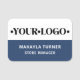 This stylish dark blue Logo Employee Name Tag is easily customizable with your logo, name, and job title. There are options for a traditional pin back or a magnetic fastener.