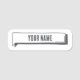 A hand-drawn name tag with a subtle speech-tab shape and soft shadow detail.