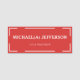 Doté d'un élégant arrière - plan rouge intemporel, ce nom personnalisable permet la personnalisation du texte blanc. Ajoutez votre nom sur la ligne supérieure et votre position sur la deuxième ligne. La bordure graphique minimaliste renforce son élégance unique. Cette étiquette de nom est parfaite pour les événements d'entreprise, l'utilisation quotidienne ou tout cadre professionnel. Son design élégant vous garantit une impression sophistiquée.