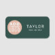 Modèle d'étiquette de nom moderne pour ajouter votre logo d'entreprise, le nom de l'employé et le titre actuel de l'emploi ou seulement le nom de l'entreprise. Customisez en changeant les polices et la couleur arrière - plan en utilisant notre outil de conception pour correspondre aux couleurs de votre marque.