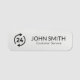 Un nom argenté élégant avec le logo de l'entreprise, conçu pour l'équipe du service à la clientèle. Il s'agit d'une façon simple et professionnelle d'identifier les membres du personnel utiles.