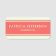 Un mélange éclatant d'orange rosé et de beige au coucher du soleil offre une énergie accueillante. Idéal pour les événements de réseautage, de vente au détail ou de style de vie dans une atmosphère conviviale. Personnalisez avec votre étiquette de nom dans la zone de personnalisation.