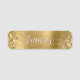 Parties scintillant d'or brillant sur une fausse feuille métallique. Le style moderne écriture manuscrite signature swash script style de police, la couleur de l'ombre portée et la taille peuvent être changés si nécessaire. Forme rectangulaire longue pour votre étiquette de nom.