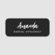 Créez une impression chaleureuse et professionnelle avec ce badge de nom d'hygiéniste dentaire élégant, doté d'un fond noir moderne et d'un beau design de nom en écriture cursive.