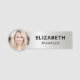 Étiquette nominative photo métallisée argentée moderne. Téléchargez la photo de l'employé et ajoutez son nom et titre en typographie simple.