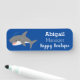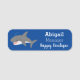 Un grand requin blanc heureux et affamé nage dans l'océan. Dessiné dans le style d'illustration de dessin animé mignon sur un arrière - plan bleu pour une journée amusante!