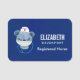 Un nom avec une jolie illustration d'un ours bleu portant un casquette d'infirmières avec un petit coeur dessus. Portant également un masque de protection et a un stéthescope bleu aussi.