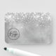 La parties scintillant argent brillant faux filé se met en surbrillance sur le bord supérieur sur une fausse feuille gris métallique. Ajoutez un logo d'entreprise et écrivez des noms grâce à la fonctionnalité d'effacement sec plus tard. La parties scintillant et le papier d'aluminium sont créés avec des graphiques numériques qui s'impriment comme votre photo sur la balise nom.