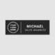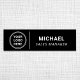 Étiquette nominative noire professionnelle moderne avec le logo de votre entreprise ou organisation. Ajoutez un nom et un titre en texte blanc simple.