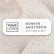 Balise de nom blanc avec votre nom et titre personnalisés. Le nom et le logo sont séparés par un mince séparateur gris clair. Téléchargez votre propre logo et créez des étiquettes de nom pour votre entreprise ou événement. Vous pouvez modifier les couleurs de police et d'arrière - plan à l'aide de l'outil de conception.