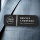 Balise de nom noir avec votre nom et titre personnalisés. Le nom et le logo sont séparés par un séparateur en dégradé gris argenté imprimé. Style élégant et classe. Téléchargez votre propre logo et créez des étiquettes de nom pour votre entreprise ou événement. Vous pouvez modifier les couleurs de police et d'arrière - plan à l'aide de l'outil de conception.
