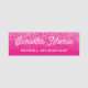 Fille fausse classique parties scintillant rose chaud avec un dégradé foncé style bloc de couleur, il est donc un peu plus facile de lire le texte plus petit pour son titre de travail. Balise de nom personnalisée pour votre employé. Il y a d'autres styles de calligraphie moderne à choisir. Le style et la taille de la police peuvent être modifiés si nécessaire.