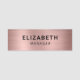 Marque de nom moderne avec un nom et un titre en simple typographie contre un rose d'or faux arrière - plan métallique.