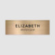 Simple marque de nom moderne avec un nom et un titre contre un arrière - plan métallique contrebrossé or.