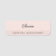 This custom pink dental assistant name tag is designed with clean simplicity and style in mind. The wearer’s name is displayed in a dark grey script, paired with a clear sans serif title underneath for easy readability. The background is in shades of pink. With its minimalist design and modern typography, this name tag is perfect for dental assistants, hygienists, and front-office staff.