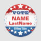 A bold, modern patriotic circle template designed for political messages, campaign graphics, announcements, or community causes. Featuring vibrant red, white, and blue colors with layered stars, banners, and subtle rays, this customizable design offers a large central space for names, slogans, or calls to action. Perfect for flyers, stickers, social posts, buttons, yard signs, or digital campaigns, this versatile template brings energy, clarity, and classic Americana style to any message.