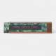 La plaque signalétique Tropical chic de bureau comporte deux lignes de texte personnalisé pour votre nom et titre ou nom d'entreprise. Personnalisez avec vos détails en lettres blanches modernes sur un rectangle noir dressé sur un arrière - plan dramatique de feuilles botaniques de jungle et de feuillage.