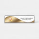 Illustration d'une fausse bannière d'or sur un arrière - plan blanc qui a un cercle noir sur lequel repose un faux caducée d'argent et votre nom et titre en noir.