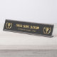 Trophées de noir et d'or. Plaque signalétique pour un entraîneur de champion.