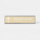 Plaque minimaliste de nom de bureau avec un design croisé simple et moderne en or et blanc. Convient aux pasteurs, prêtres, ministres, révérends, missions chrétiennes, administration ecclésiastique et organisations religieuses. Utilisez le modèle facile pour ajouter un nom, une citation inspirante ou un verset de la Bible. Modifiez pour modifier les couleurs en n'importe quelle combinaison. Trouvez des cadeaux spirituels et confessionnels et des fournitures de bureau assorties dans notre boutique. ♡ Idyllfire