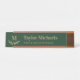 Porte-nom Pour Bureau Elegant Greenery Tan Dark Green Monogram & Name