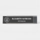 Plaque de nom de bureau noir moderne avec le logo de votre entreprise ou de votre organisation. Ajoutez un nom et un titre dans une simple typographie blanche.
