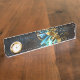 Luciole à vapeur avec ailes bleues transparentes et ampoule verte sur arrière - plan usé, marron, texturé. Style Steampunk.