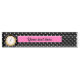 Motif à pois noir et blanc. Pois blancs sur le noir et au milieu il y a une bande rose chaud où vous pouvez ajouter votre texte.