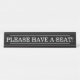 Cette conception traditionnelle comporte le message "S'IL VOUS PLAÎT, AVEZ UN SIÈGE!". Cela pourrait être utilisé dans un salon d'attente ou une salle d'attente pour informer les patients ou les clients qu'ils seront servis sous peu et qu'ils devraient prendre place entre-temps.