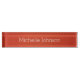 Cette plaque d'immatriculation présente un design moderne et professionnel composé d'une simple image arrière - plan d'un champ de couleur avec de petites variations et une texture granuleuse en vermilion (rouge-orange chaud). Un champ de texte modèle vous permet d'ajouter votre nom. Le lettrage est une police serif propre en blanc pour une plaque de nom colorée, élégante, mais professionnelle.