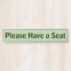 Cette conception de base comporte le message "Please Have a Seat". Cela pourrait être utilisé dans une zone de réception ou une salle d'attente pour informer les visiteurs, les clients ou les patients qu'ils seront aidés sous peu et qu'ils devraient prendre place dans l'intervalle.