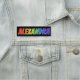 Cet amusement, caractéristiques de conception nommées vibrantes et multicolores d'étiquette le prénom commun "ALEXANDRA", avec les lettres du nom ayant un spectre coloré d'arc-en-ciel comme le motif de coloration de gradient, sur un arrière - plan coloré par noir. Un nametag comme ceci pourrait être porté par un employé, un membre du personnel, ou un volontaire appelé Alexandra, pour aider à identifier le porteur à d'autres. [~Z0000344]