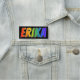 Cet amusement, caractéristiques de conception nommées vibrantes et multicolores d'étiquette le prénom commun "ERIKA", avec les lettres du nom ayant un spectre coloré d'arc-en-ciel comme le motif de coloration de gradient, sur un arrière - plan coloré par noir. Un nametag comme ceci pourrait être porté par un employé, un volontaire, ou un technicien dont le nom est Erika, pour aider à identifier le porteur aux clients ou à d'autres personnes. [~Z0000344]